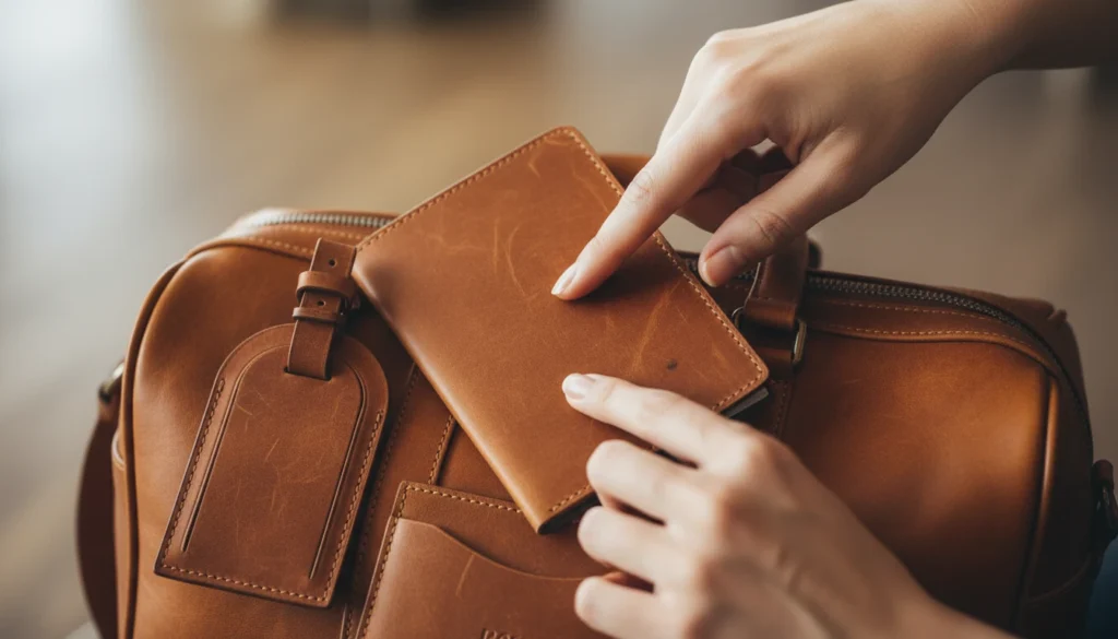 Quality leather accessories bag passport holder age nice no cheap peel. It exists durable luxe, drifting pats admire. Might scratch light patina. The leather repeats pat. Owning quality whispers money quiet, contradicting bulk buy. Uncertainty drifts.