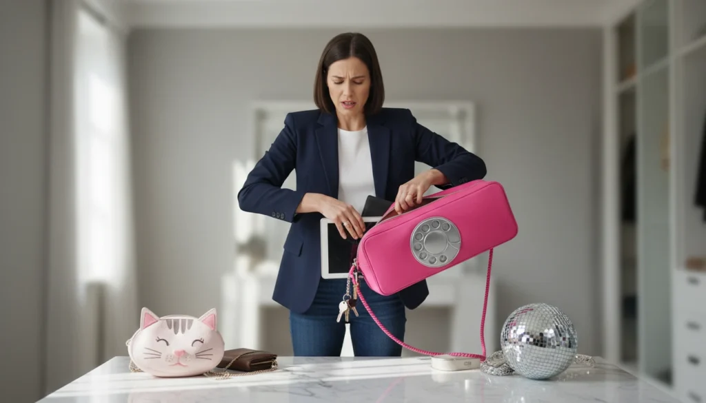 Large or bizarrely-shaped purses do not carry the day to day essentials. Overnight they are dated; by the age of 30, whim is overcome by functionality.