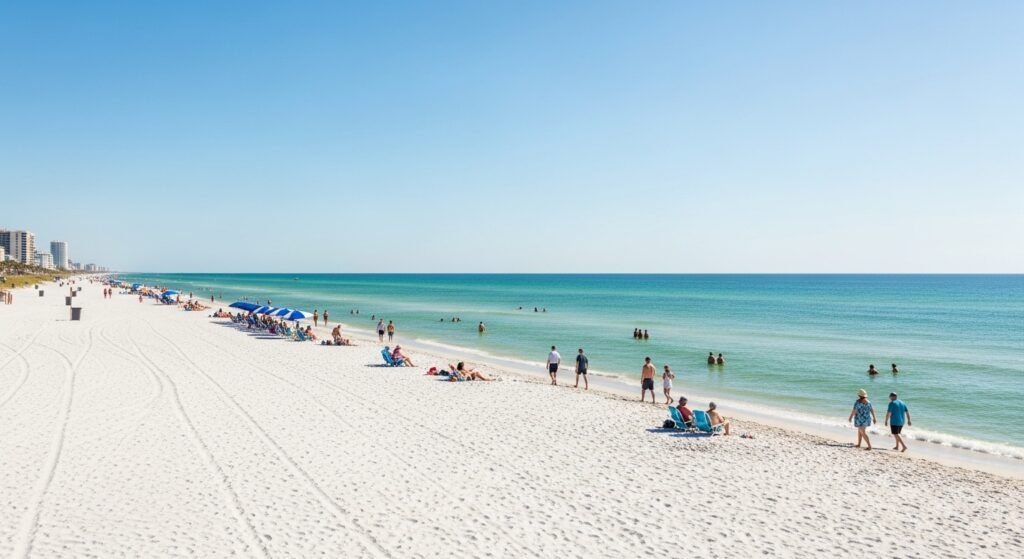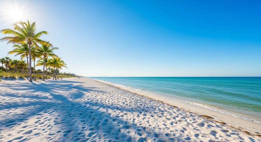 Siesta Beach is the place that boasts of unbelievably clear water and smooth white beaches. It is a beach on Siesta Key close to Sarasota that is still peaceful but lively. It does not get hot under bare feet on even warm afternoons, the sand remains cool. Mild waves break upon individuals. It usually seems as though the horizon stretches endlessly when it becomes a bright sun. Tourists arrive to have some rest, meditate, and enjoy the coastline. Nothing feels rushed here. Mornings glow softly. Evening comes down with coloured skies. It is a sort of place, in which time hangs heavy, and in water and mind there is sanity.