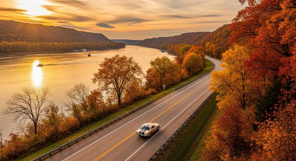 The Mississippi River provides the Great River Road that is full of picturesque towns, fields, and historical landmarks. It is a scenic road which gives out cultural scenes, river scenes and quiet countryside scenes that depict the natural and historical heritage of America.