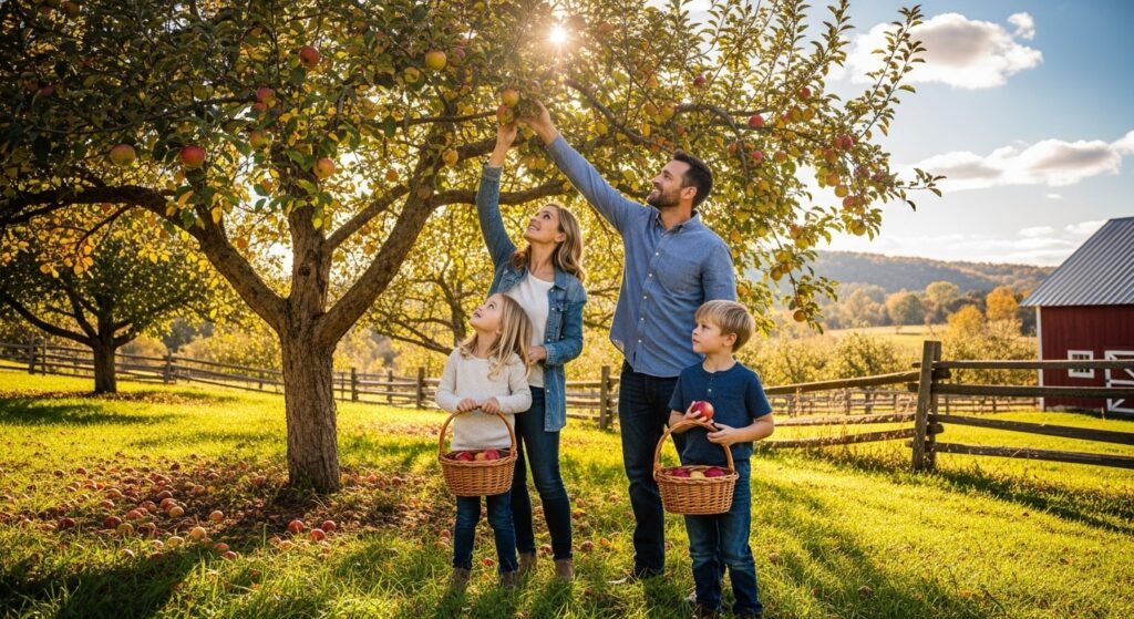 Seasonal agricultural picking and hayrides give family farms a wholesome experience. Tourists pick farm products, go to corn mazes, and visit animals on the farm. The environment is realistic and is not hurly burly like commercial amusement parks.