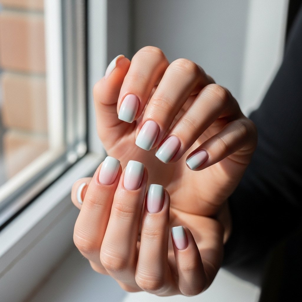 Effects of ombre fades are the combination of two colors that diffuse on the nail surface. The change is done gradually which adds depth and visual appeal. This design is very classy when used on short nails and it gives an easy but stylish touch.