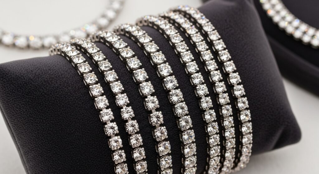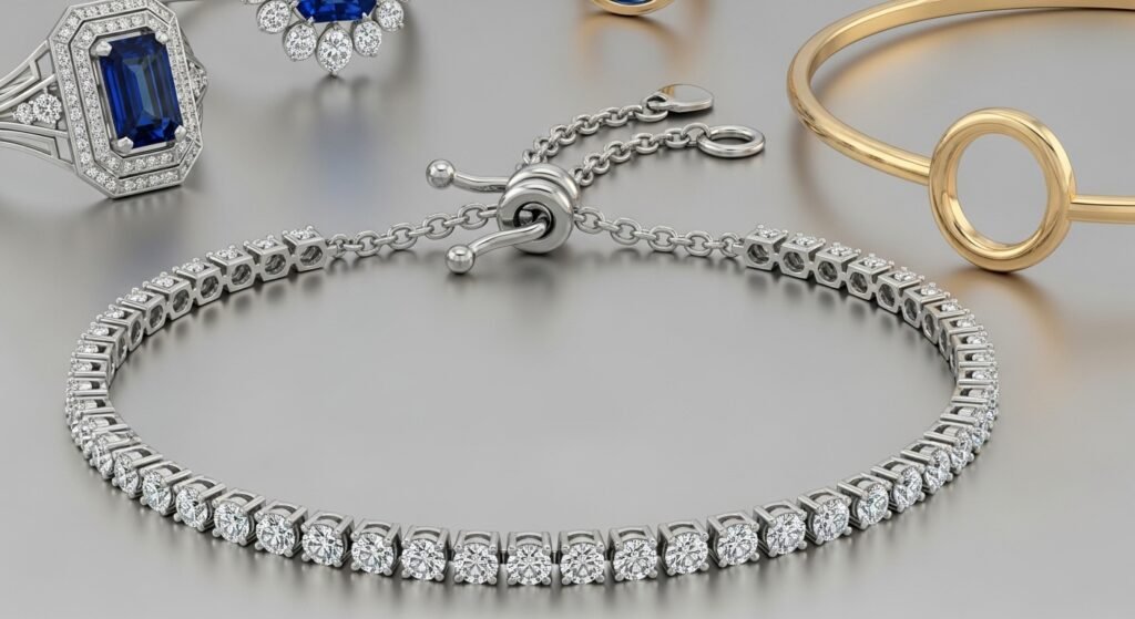 Tennis bracelets never go out of fashion and have an unobtrusive fashion in casual wear. Their neat lines and lightening glitter can be applied to casual use as well as to a formal event. Most designs in modern times are aimed at comfort and durability with fine simplicity. They mix up with watches and rings among other jewellery. Tennis bracelets are no longer an exclusive item prepared by the classic crystal setting, but a possible purchase at a reasonable price. The selection criterion of the right one is based on material, design, and individual choice. This selection is a sorted list of trendy products that compromise on quality and glamour. The bracelets have a sophisticated feel which makes them effortless and smooth daily accessorization.