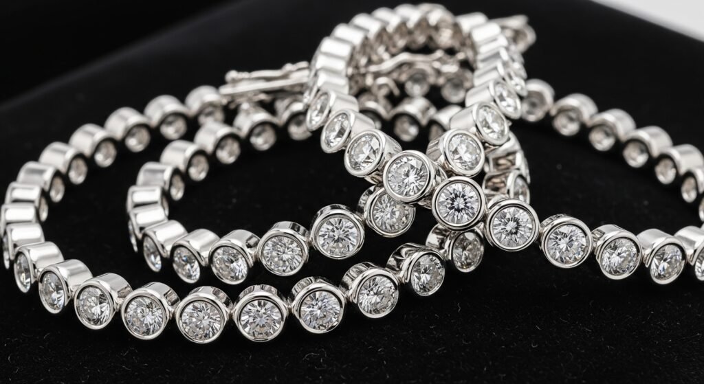 Each stone is fastened in a smooth frame with bezel-set stone tennis bracelets. This environment enhances serviceability and comfort. The elegant design prevents snagging and provides a smooth appearance, which can be used on a regular basis and in an active life.