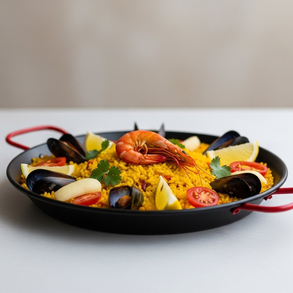 Paella is a colorful rice dish prepared with vegetables and herbs and diverse ingredients that make it taste better. The presentation in colors and the fulfilling aroma of its food products is a reminder of the regional traditions, and the meal is a dependable addition to the family and friend dinner.