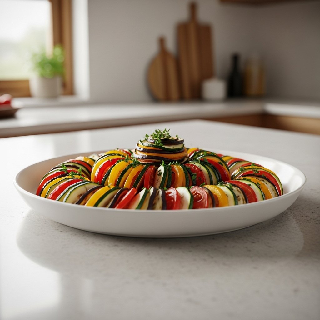 Ratatouille is a mixture of fresh cooked vegetables which are cooked gradually with herbs and made into a light but full of flavor meal. The combination of its colorful outlook and mild seasoning brings out the use of natural products, therefore, serving as a healthy meal that cherishes country cooking traditions.