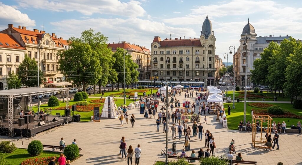 Timișoara is characterised by wide squares and the architecture of the Secessionists. Parks make the urban environment softer. Cultural festivals put music, art out in the open. The ambience is free and imaginative and comfortingly relaxed.