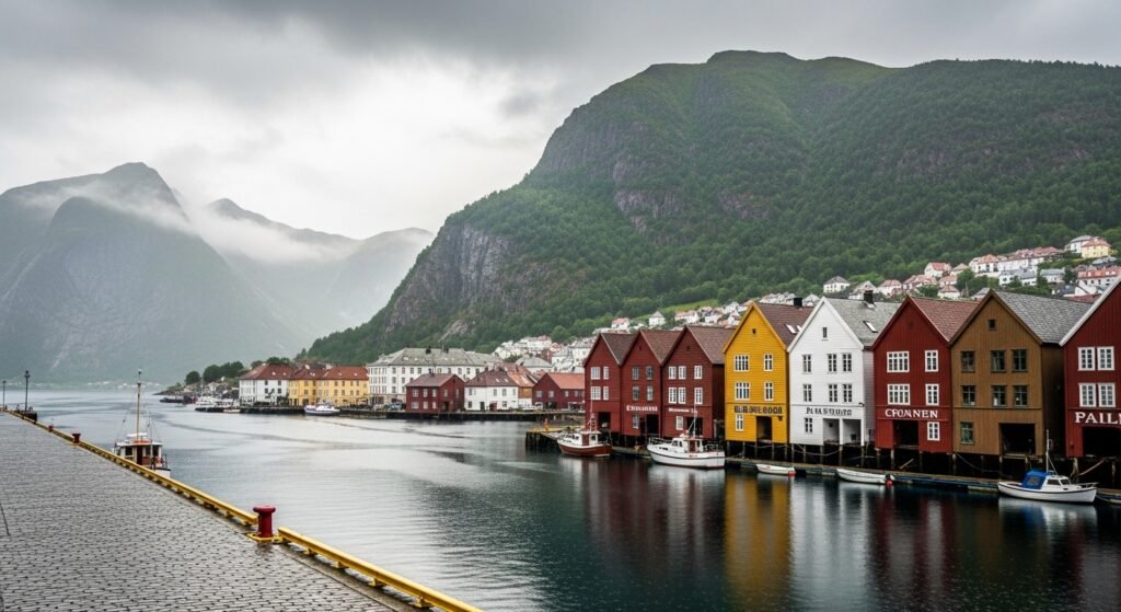 Both surrounded by fjords and mountains, Bergen is a place that balances nature with history. The Hanseatic origins are reminded by wooden houses at Bryggen. Rain has a habit of coming but there is drama of silence in the mist on top of the harbour.