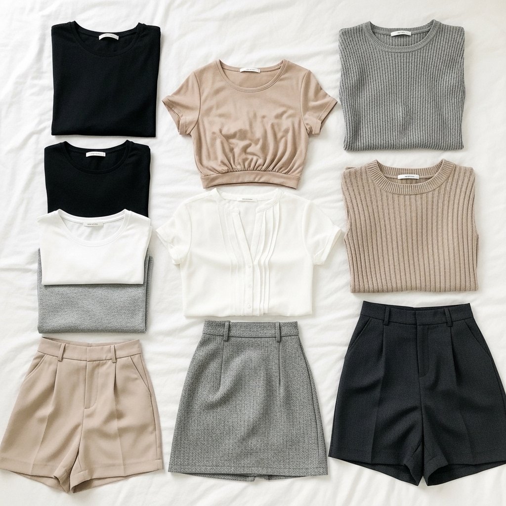 By using a limited variety of colors that hold together, they can be used together, and every top will likely fit every bottom. Such a plan may allow a small number of items to look like dozens of various outfits without necessarily having to stuff them into the bag.