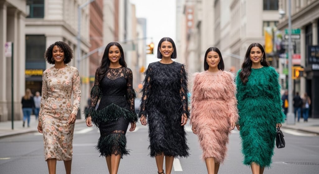 When big celebrities appear at award shows wearing feathered dresses, it quickly influences everyday fashion. These celebrity moments become the ultimate guide to the way to wear the look with complete confidence.