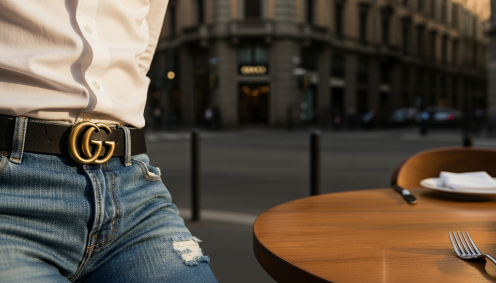 A twist lives in Gucci’s accessories – where elegance meets real-world use. Belts sit neatly across dinners and street corners, sunglasses serve without announcing themselves. Practicality walks beside luxury, allowing each piece to belong wherever the day goes.