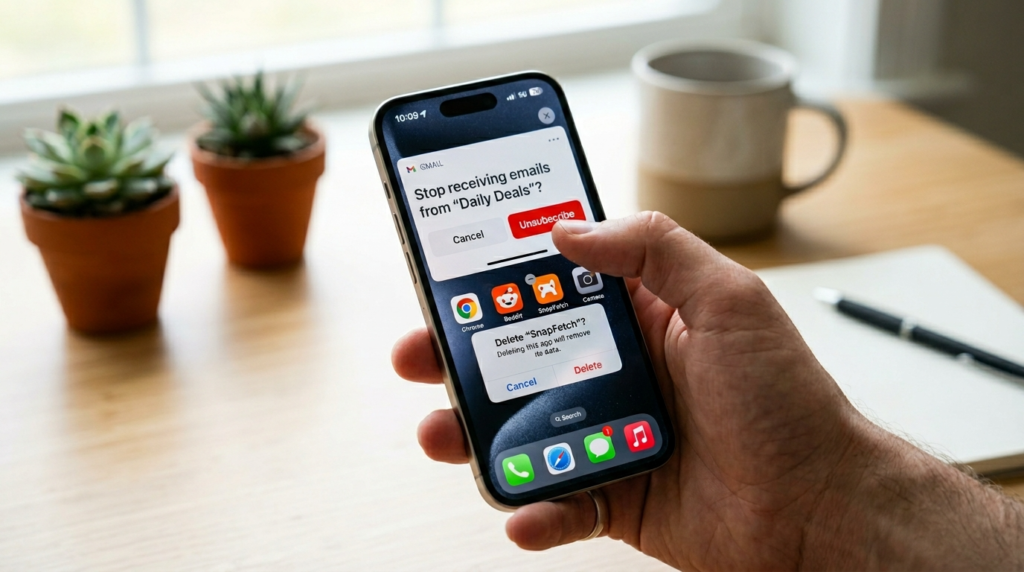 Unsubscribing to the old emails and deleting the apps that are not in use anymore can ease the mind burden. It makes a less dystopian online space that is not as cluttered to explore.