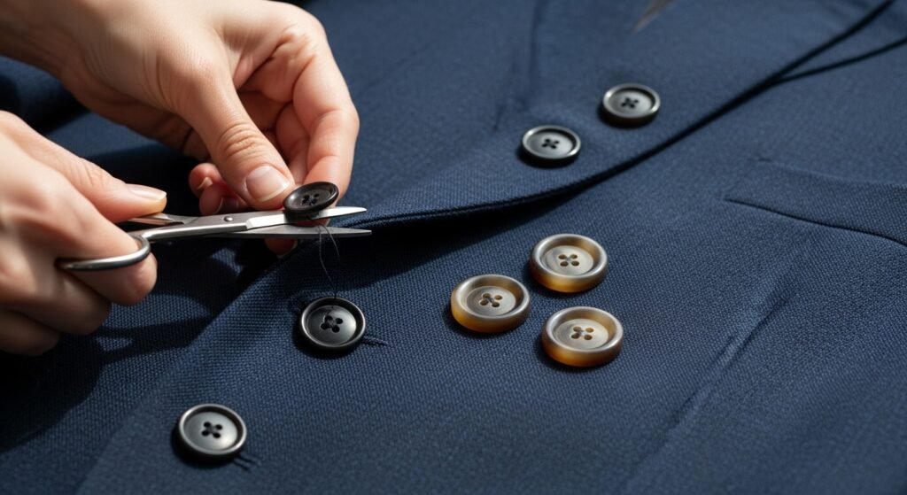 The simplest method of revamping a blazer or a cardigan is to swap out the simple buttons with metal or horn buttons. This small difference can be of great consequence to the perceived worth of a garment.