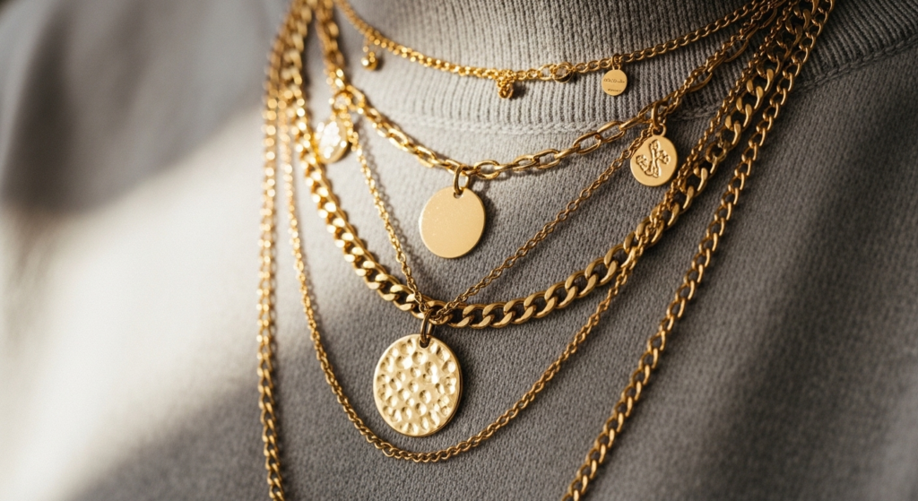 Multiple thin gold chains might be a hint of detail to a simple appearance. Well-chosen jewelry may also help to seem like an expensive piece of clothing in a basic outfit and may potentially help emphasize your style.