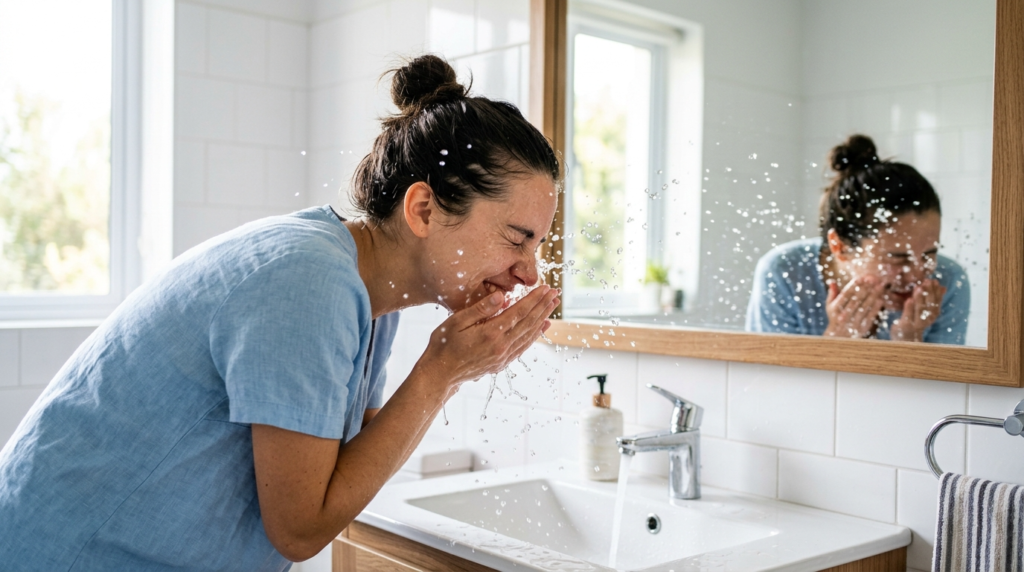 Cleansing The Face With Cold Water