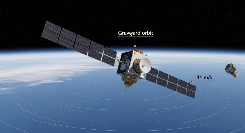 This incident helps us remember that space is becoming congested. In present-day satellites, graveyard orbits are common, and controlled reentry is used to ensure that the satellite will fall precisely where we want it to fall rather than leaving it to chance.
