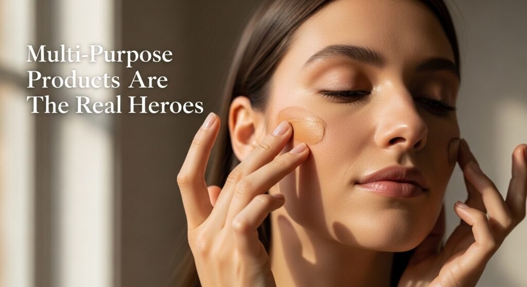 The fact that multi-use sticks are compatible with this style is also one of the best aspects of the style. One creamy product can be frequently dotted on the eyelids, rubbed on the cheekbones, and pressed on the lips to create a speedy effect.