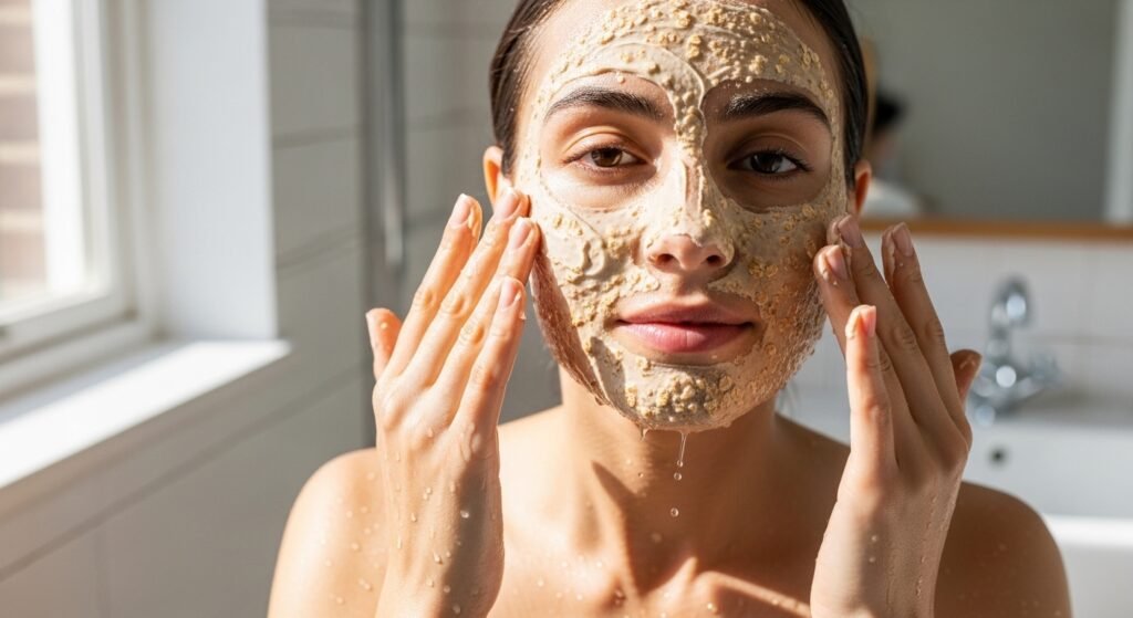 Add oatmeal ground in a fine mill until a soft paste is formed. Massage on sensitive skin during ten minutes to assist it. Rinse gently. It gives the surface a clean feel, a calm and more polished feel.