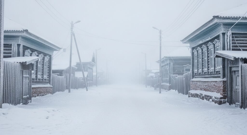 Verkhoyansk has high seasonal fluctuations but the winters there are also notorious. The town is usually smothered by ice fog, and everyday routine means taking time and planning in the never-ending cold of the Arctic.