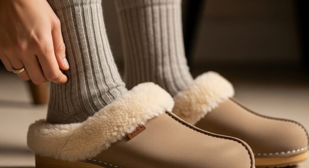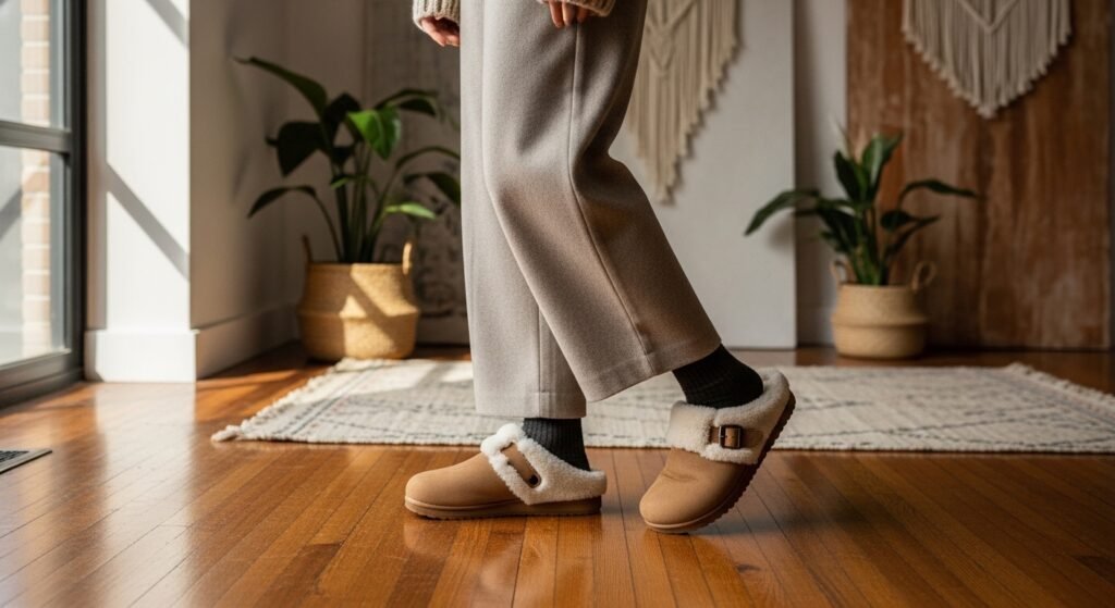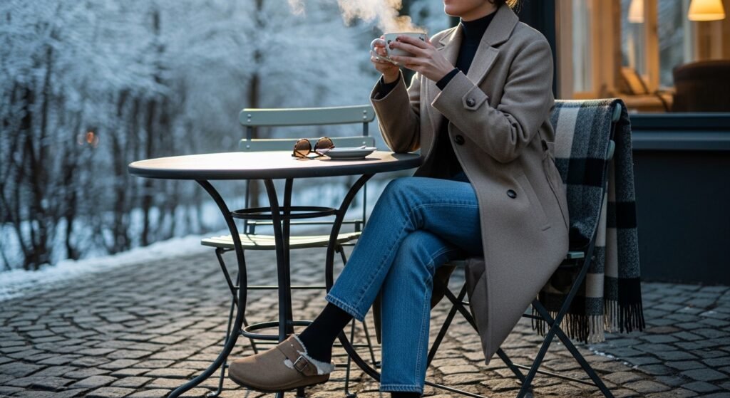 Shearling clogs integrate easily into everyday winter wardrobes, working just as well with straight leg denim and a tailored coat as they do with midi skirts and chunky sweaters. Their versatility allows wearers to maintain comfort without sacrificing aesthetic coherence, which is essential when dressing for fluctuating winter temperatures.