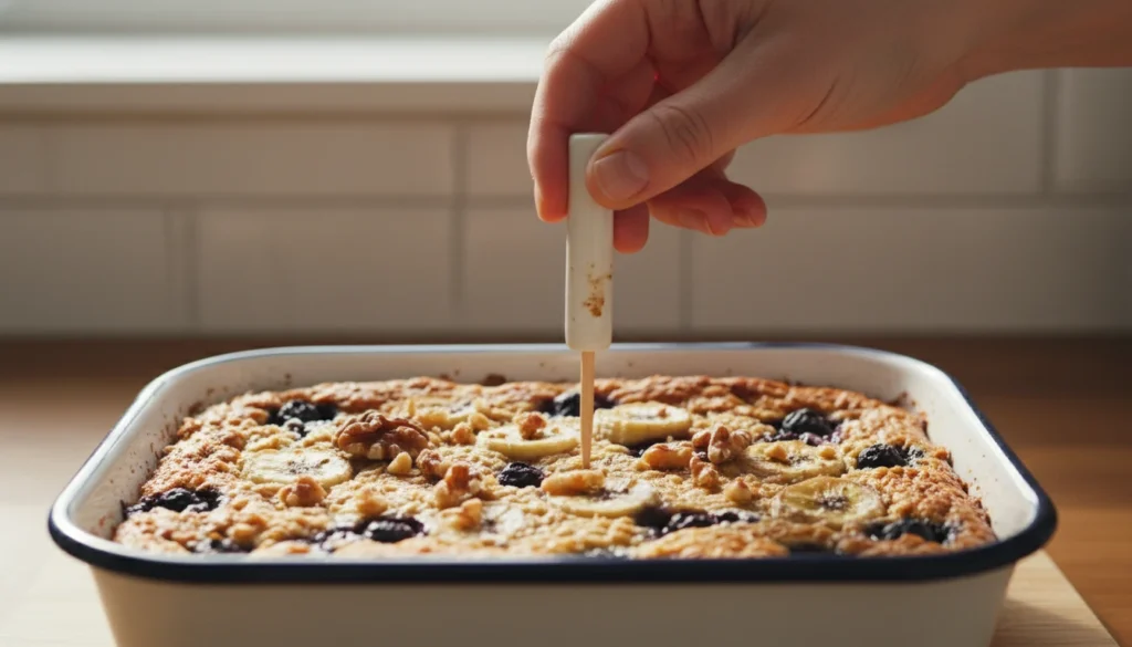 Insert a toothpick in the centre and see whether the oatmeal is cooked or not. It has to emerge basically pure. A firm outside and a soft inside indicate the dish is now ready.
