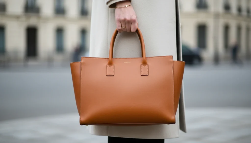 A tan or black leather tote carries daily essentials without sacrificing style. Interior pockets keep everything organized. Well-made leather develops character as it ages.
