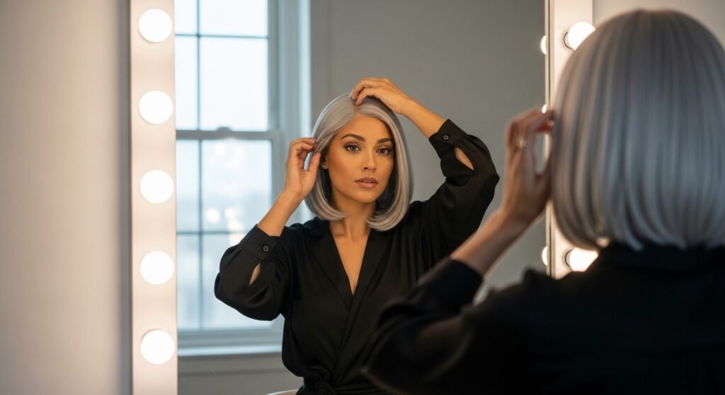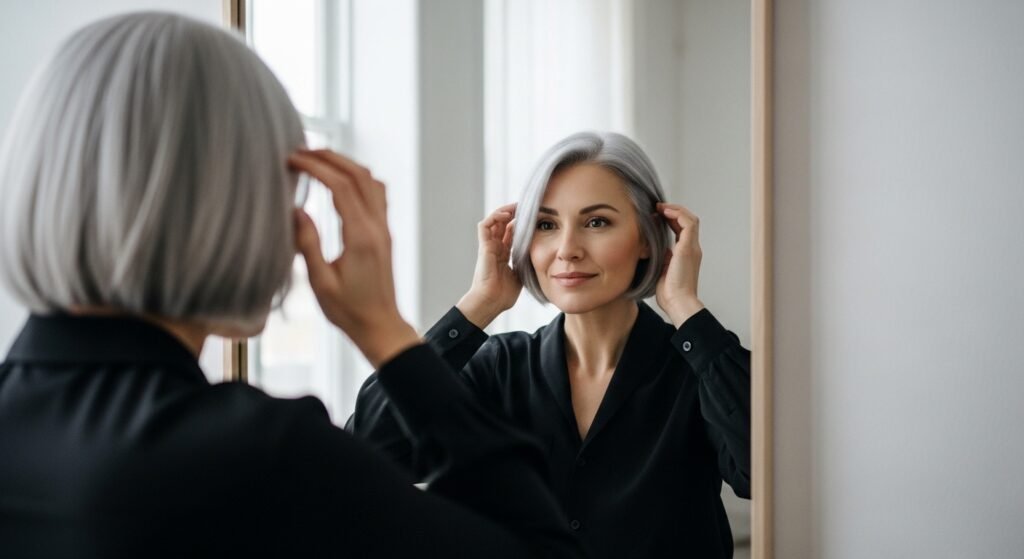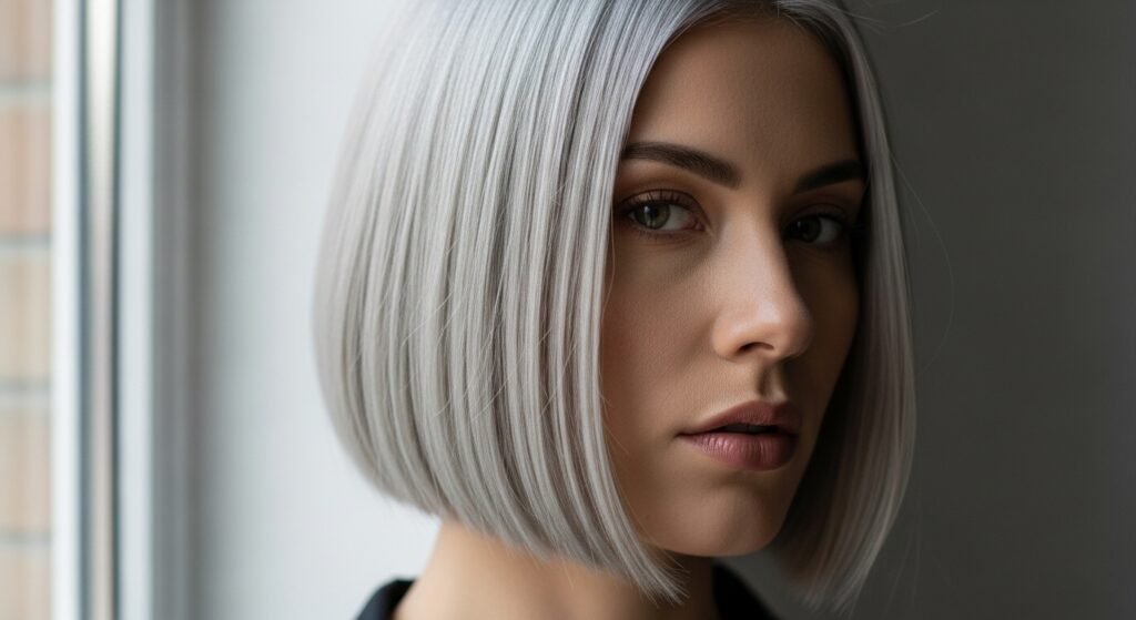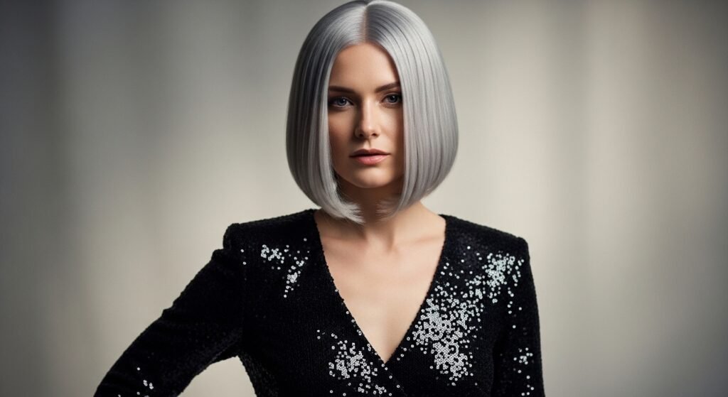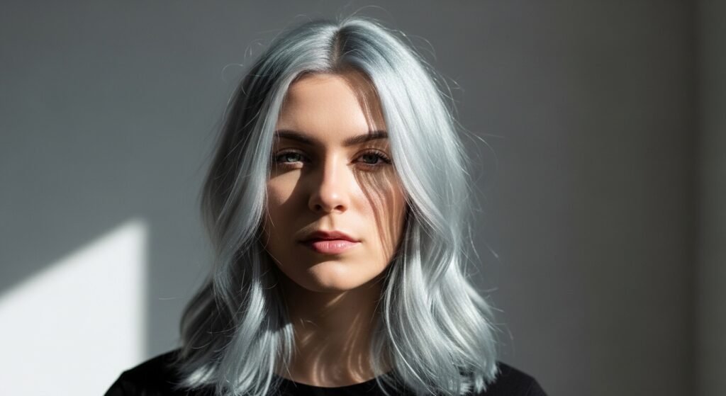 The manner in which she is wearing this color is sophisticated, making it clear that gray or silver is not the color of a particular age group. She renders the shade young, edgy, and even high-end simultaneously.
