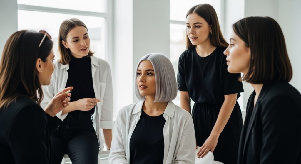 Entering a high-profile fashion show with silver hair is a power move that few people can pull off so casually. The silver color combined with her sequined dress gave me the impression that it should have been in a beautiful sci-fi movie.