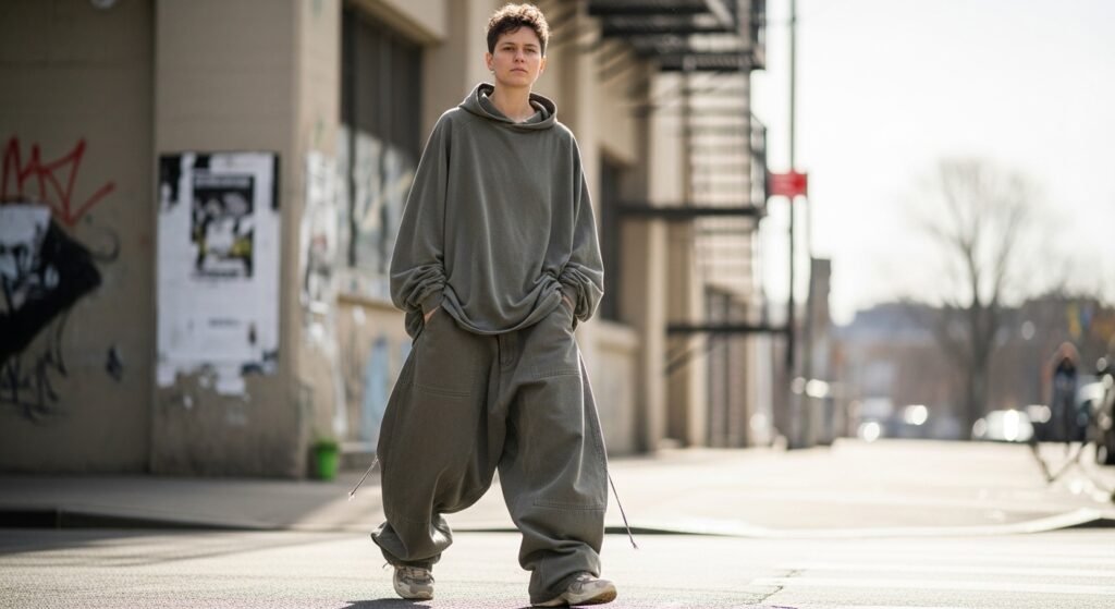 Oversized clothing is the current trend in the USA; however, there is a very fine line between loose and sloppy. Perhaps maintaining a balance could be the solution.