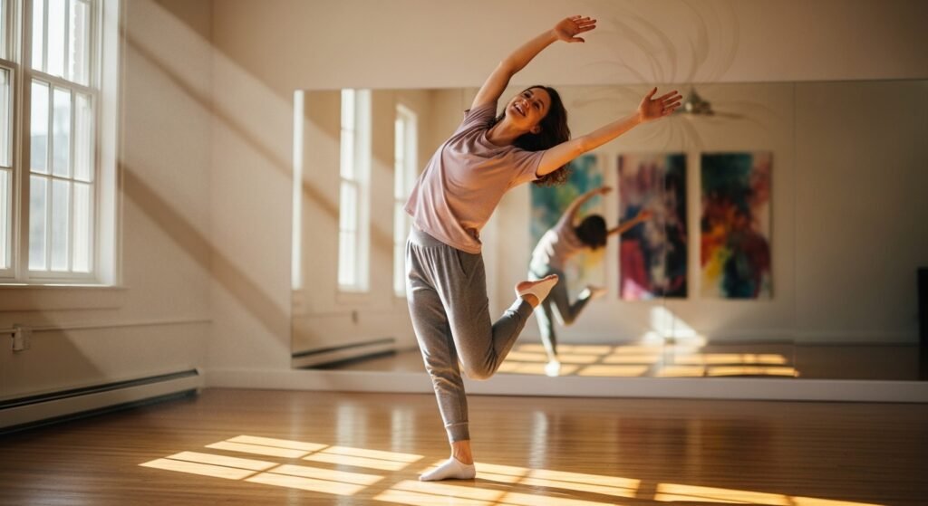A difference is having a method of moving that is enjoyable to do and not an obligation. Stretching or a fast dance may certainly lift your mood rather naturally.
